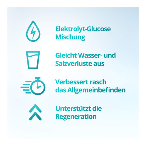 - zur oralen Salz- (Elektrolyt-) und Flüssigkeitszufuhr (Ausgleich von Salz- und Wasserverlusten) bei Durchfallerkrankungen.