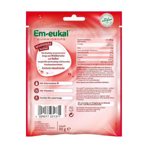 Em-eukal Gummidrops Wildkirsche-Salbei einfach genießen und die Bedeutung einer abwechslungsreichen und ausgewogenen Ernährung und einer gesunden Lebensweise beachten.