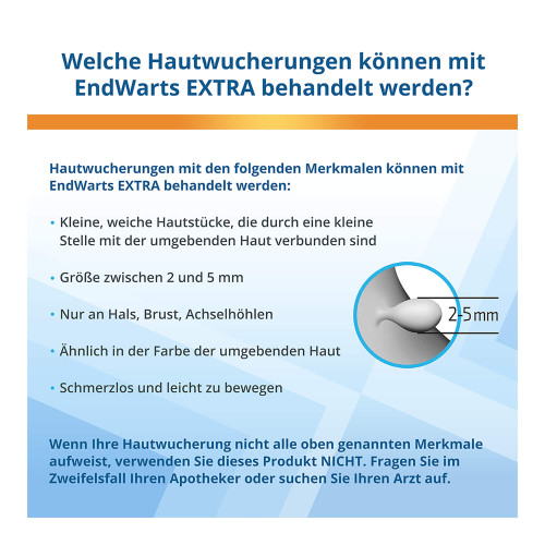 Verwenden Sie EndWarts Extra gegen Stielwaren nicht bei Kindern und Jugendlichen unter 18 Jahren, wenn Sie nicht sicher sind, ob die Hautwucherung eine Stielwarze ist.