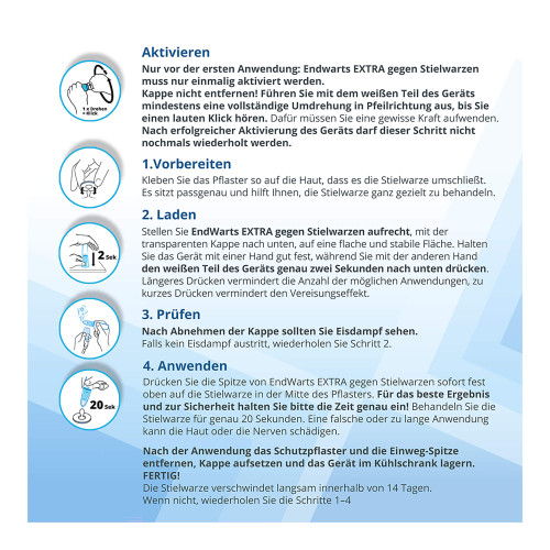 Nur vor der ersten Anwendung muss EndWarts Extra gegen Stielwarzen einmalig aktiviert werden.