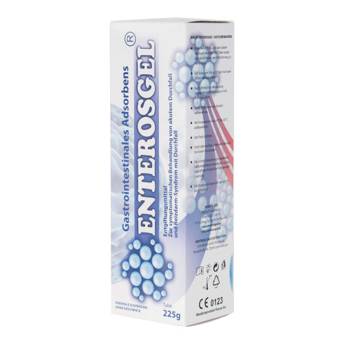 ENTEROSGEL® ist ein perorales Darm-Adsorbens (Enterosorbens) auf Basis von organischen Mineralen, adsorptionsfähig gegenüber einigen Gift- und Schadstoffen im Darm (z.B. Endotoxine), die es physikalisch an seiner Oberfläche bindet und somit die Häufigkeit der Darmentleerungen und damit auch die Dauer des Durchfalls reduziert.
