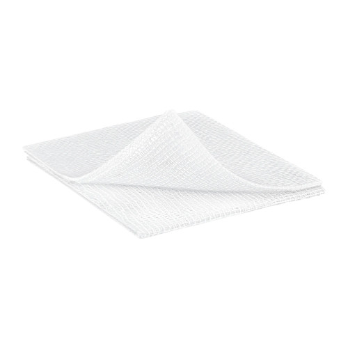 Aus Verbandmull EN 14079, 17-fädig, 8-fach, mit eingeschlagenen Schnittkanten (= ES), auch mehrfach aufgeklappt in größeren Formaten verwendbar, ohne dass störende Randfäden auftreten.