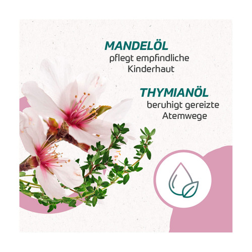 Mit Eucabal® Kinderbad mit Thymian wird Baden zum Vergnügen. Das enthaltene Mandelöl pflegt empfindliche Kinderhaut. Der Thymianduft ist wohltuend, beruhigt und sorgt für wohlige Müdigkeit.