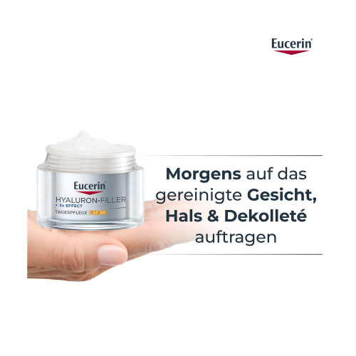 Die Eucerin Hyaluron-Filler + 3x Effect Tagespflege mit LSF 30 wurde entwickelt, um dem Alterungsprozess der Haut entgegenzuwirken. Sie mildert selbst ausgeprägte Falten, strafft sichtbar die Haut und spendet intensive Feuchtigkeit für eine jünger und straffer aussehende Haut.