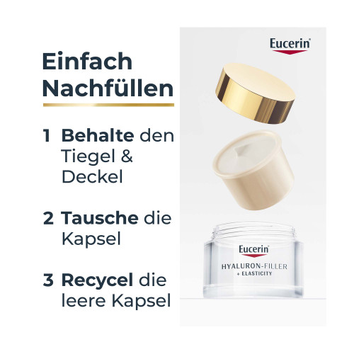 Für ein optimales Ergebnis in Kombination mit anderen Produkten der Eucerin Hyaluron-Filler + Elasticity Reihe verwenden.