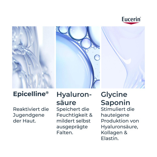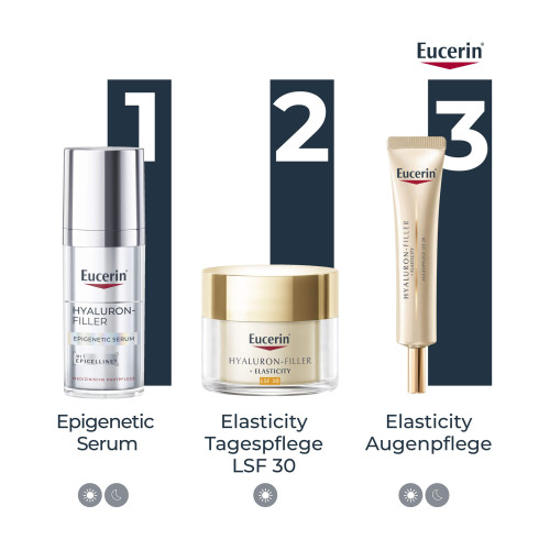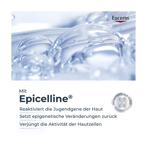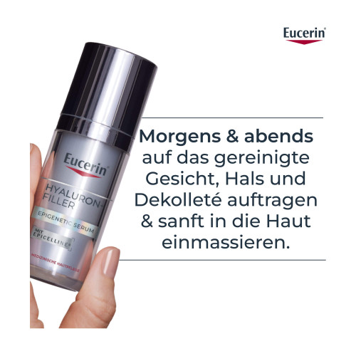 Lebensstil und Umweltfaktoren können die epigenetischen Muster der Haut verändern. Das bedeutet, dass Jugendgene deaktiviert werden, was zu sichtbaren Anzeichen von Hautalterung führt. Nach 15 Jahren epigenetischer Forschung hat Eucerin einen Weg gefunden, Jugendgene in der Haut zu reaktivieren - basierend auf der patentierten Age Clock Technology. Das Eucerin Hyaluron-Filler Epigenetic Serum ist eine Hyaluron Gesichtspflege, die für straffe Gesichtshaut sorgt, feine Linien reduziert und hilft, die Haut jünger aussehen zu lassen. Das Serum fürs Gesicht enthält den von Eucerin entdeckten Wirkstoff Epicelline®, der die Jugendgene der Haut reaktiviert und die Aktivität der Hautzellen verjüngt.