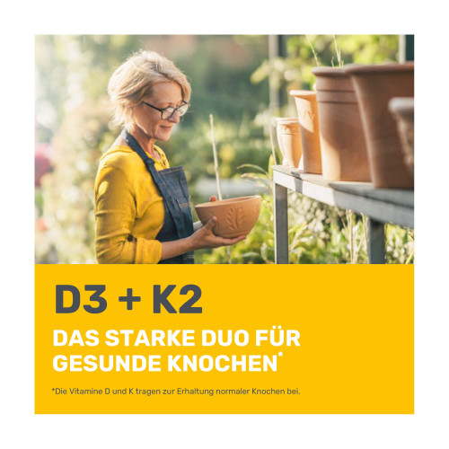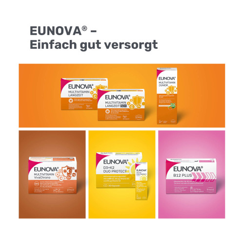Die Kombination der sich ergänzenden Vitamine D3 und Vitamin K2 in einem Präparat ist im Hinblick auf die Ernährungsphysiologie sinnvoll. EUNOVA® DuoProtect leistet als 2-in-1-Nahrungsergänzungsmittel eine wertvolle Ergänzung zu einer gesunden Ernährung und bewussten Lebensweise.