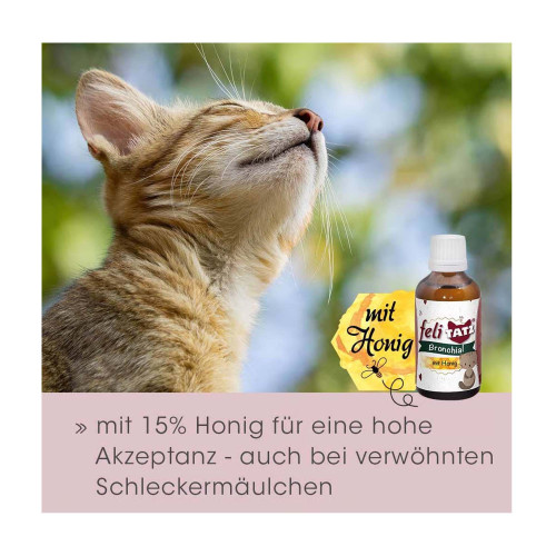 Der enthaltene, reine Honig regt zudem den Appetit an und versorgt die Katze mit Energie. feliTATZ Bronchial wird von Katzen jeder Altersgruppe vertragen und kann auf Grund seiner hohen Akzeptanz problemlos ins Futter gemischt werden.