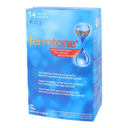 Ferrotone® ist ein natürlich vorkommendes eisenreiches Wasser, das direkt aus seiner natürlichen Quelle gewonnen wird. Das speziell filtrierte Wasser hat einen hohen Eisengehalt und ein Tagesportionsbeutel Ferrotone® Original leistet so einen gezielten Beitrag zur täglichen Eisenversorgung.