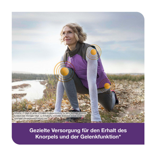 Nahrungsergänzungsmittel mit Vitamin C als Beitrag zu einer normalen Kollagenbildung für eine normale Funktion von Knochen und Knorpel.
