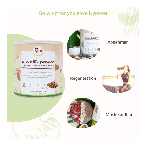 Eiweißkonzentrat (73,8 %) mit Zink, Magnesium, Calcium und L-Carnitin (1,7 %) zur Herstellung eines Shakes.