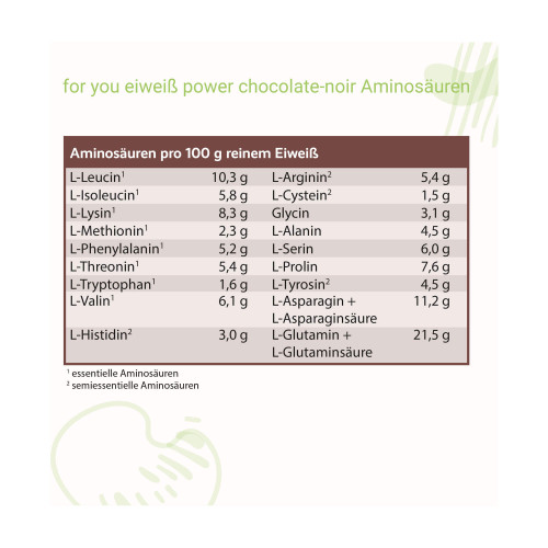 Das Eiweiß-Konzentrat aus sorgfältig ausgewählten, biologisch hochwertigen verschiedenen Proteinquellen ist gut löslich, leicht verdaulich, fettarm und wohlschmeckend. Durch die Kombination verschiedener Eiweißquellen hat das Power Eiweiß eine ausgewogene Bilanzierung aller Aminosäuren.