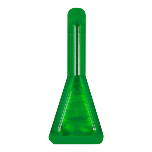 Die Pipette aufrecht halten. Leicht klopfen, damit sich die Flüssigkeit vollständig im Hauptteil der Pipette sammelt. Spitze der Pipette an der dafür vorgesehenen Stelle abknicken.