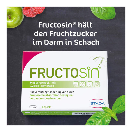 FRUCTOSiN® ist ein Medizinprodukt mit Xylose Isomerase, das im Dünndarm bei bestehender Fruktosemalabsorption Fruktose in leichter resorbierbare Glukose umwandelt. Auf diese Weise trägt es zur Verhütung/Linderung von durch Fruktosemalabsorption bedingten Verdauungs- beschwerden, wie z.B. Übelkeit, Bauchschmerzen, Durchfall oder Blähungen bei.