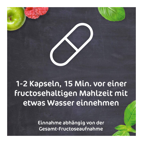 In Abhängigkeit der Gesamtaufnahme sind 15 Minuten vor fruktosehaltigen Mahlzeiten 1-2 Kapseln mit Wasser bis zu 3-mal täglich einzunehmen. Wenn die Fruktose den Darm erreicht, sollte die Kapsel bereits aufgelöst und die enthaltene XI aktiv sein.Der Kapselinhalt sollte nicht vor dem Schlucken zerkaut, sondern als Ganzes geschluckt werden. Sollte Ihnen das Schlucken der Kapsel Schwierigkeiten bereiten, können Sie die Kapsel auch öffnen und den Inhalt umgehend und unzerkaut mit etwas Wasser einnehmen. In Abhängigkeit der gesamten Fruktoseaufnahme pro Tag sind maximal 6 Kapseln einzunehmen.