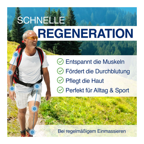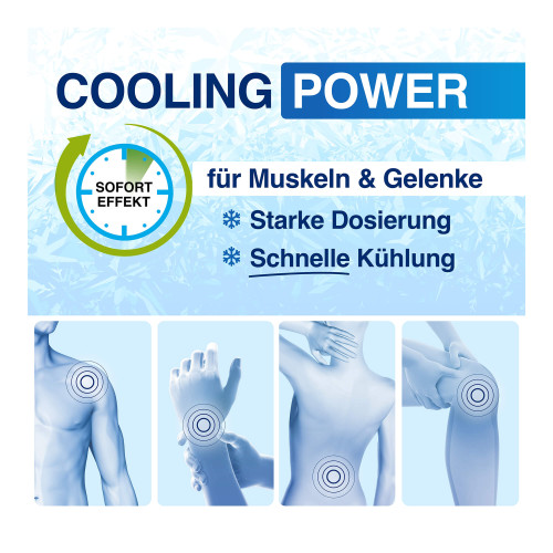 Beim Einmassieren werden die Muskeln und Gelenke sofort erfrischt, gekühlt und vitalisiert.