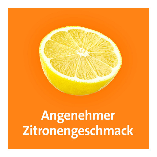 50,26 mg Ascorbinsäure (Vitamin C) (E 300), Aspartam (E 951), Citronensäure (Ph. Eur.) (E 330), Ethylcellulose, Hochdisperses Siliciumdioxid (E 551), Saccharose, Zitronenaroma.