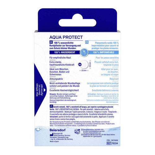 Die Hansaplast Aqua Protect Rundpflaster sind 100% wasserdicht und eignen sich zur Versorgung und zum Schutz kleiner Wunden. Dabei bietet das flexible, wasserdichte Duschpflaster idealen Wundschutz beim Waschen und Baden.