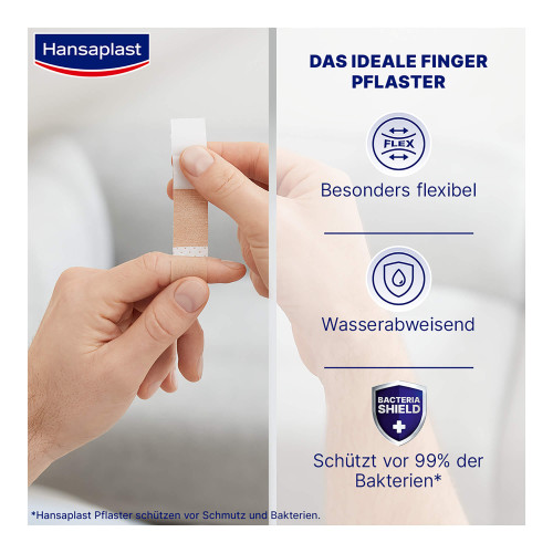 Hansaplast Fingerpflaster eignen sich für alle Arten von kleineren Wunden bzw. Verletzungen. Die flexiblen Pflaster Strips sind extra lang und lassen sich zweimal um den Finger legen für eine optimale Fixierung. Die elastischen Fingerpflaster sind ideal für viel bewegte Körperstellen, wie Gelenke, und passen sich der Körperbewegung an.
