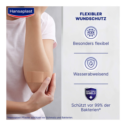 Hansaplast Elastic Pflaster eignen sich für alle Arten von kleineren Wunden bzw. Verletzungen. Die extra flexiblen Pflaster sind ideal für Gelenke und passen sich den Körperbewegungen optimal an.