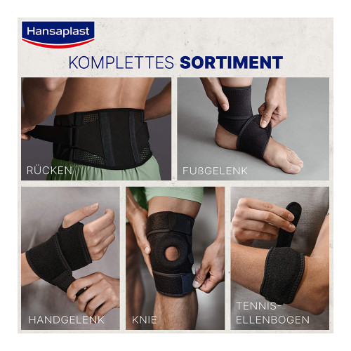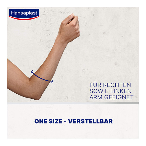 Die verstellbare Hansaplast Protective Tennisellenbogen-Bandage bietet gezielten Druck bei Schmerzen im Unterarm (z.B Tennisarm, Golferarm). Sie bietet einen moderaten Stützgrad während der Bewegung und das Kompressionslevel kann individuell angepasst werden.