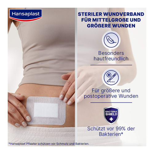 Hansaplast Sensitive XXL sind sterile Pflaster zum Schutz mittelgroßer und größerer Wunden, wie sie im Alltag entstehen können. Sie sind auch für die Wundversorgung nach kleineren operativen Eingriffen geeignet.