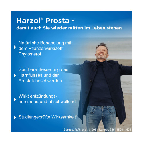 Harzol Prosta 10 mg Hartkapseln. Wirkstoff: Phytosterol. Anwendungsgebiete: Zur Anwendung bei männlichen Erwachsenen. Zur symptomatischen Behandlung der benignen Prostatahyperplasie (gutartige Vergrößerung der Vorsteherdrüse). Warnhinweis: Enthält Glucose und Lactose-Monohydrat.