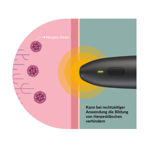 Die Anwendung konzentrierter Wärme (lokale Thermotherapie) ist ein physikalisches Wirkprinzip, das auf kurzer, konzentrierter Wärmeeinwirkung auf ein eng begrenztes Hautareal beruht. Selbst ein lokal begrenzter Wärmeeintrag kann ausreichen, Beschwerden wie Juckreiz, Brennen, Kribbeln oder Spannungsgefühl zu lindern bzw. bei rechtzeitiger Anwendung die Ausbildung von Herpesbläschen zu verhindern.