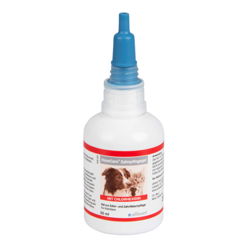 HexoCare® Zahnpflegegel ist ein chlorhexidinhaltiges Gel für die Hygiene von Zähnen, Zahnfleisch und der gesamten Maulhöhle. Regelmäßig verwendet verringert HexoCare® Zahnpflegegel die Zahnsteinbildung. Petersilienextrakt, Chlorophyll und Katzenminzeöl verleihen gleichzeitig einen frischen Atem.