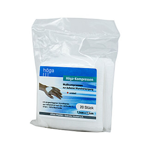 Höga Kompressen 7,5 x 7,5 cm Unsteril 8 fach 20 St