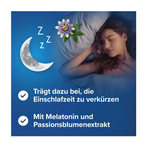 Melatonin ist ein Hormon, das in der Zirbeldrüse produziert wird, und kommt bei allen Säugetieren vor. Durch seine Funktion in bestimmten Bereichen des Gehirns trägt Melatonin dazu bei, die Einschlafzeit zu verkürzen und subjektive Jetlag-Empfindungen zu lindern. Die Aufnahme von 1 mg Melatonin kurz vor dem Schlafengehen trägt zu einer kürzeren Einschlafzeit bei. Die Aufnahme einer Dosis von mindestens 0,5 mg kurz vor dem Schlafengehen am ersten Reisetag und einige Tage nach der Ankunft am Reiseort trägt dazu bei, subjektive Jetlag- Empfindungen zu lindern.