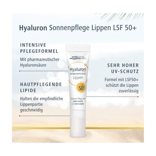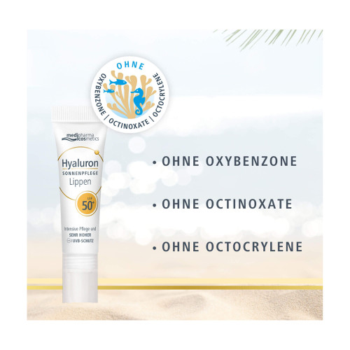 Die Hyaluron Sonnenpflege für die Lippen bietet hierfür einen sehr hohen UV-Schutz und pflegt die Lippen sanft. Die Pflegekombination mit Hyaluronsäure in pharmazeutischer Qualität und hautpflegenden Lipiden sorgt für geschmeidige Lippen und ein nachhaltiges Pflegegefühl.