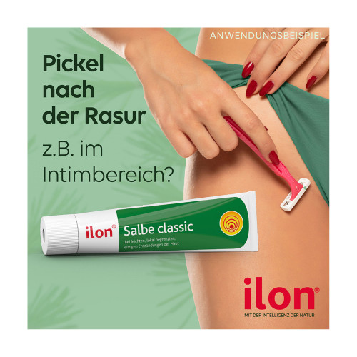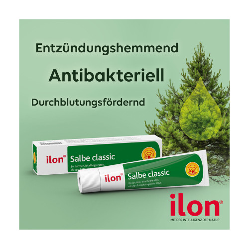 ilon® Salbe classic. Anwendungsgebiete: Traditionelles pflanzliches Arzneimittel zur Behandlung leichter, lokal begrenzter, eitriger Entzündungen der Haut, wie z.B. Eiterknötchen, entzündete Haarbälge und Schweißdrüsenentzündungen ausschließlich auf Grund langjähriger Anwendung. Warnhinweis: Enthält Butylhydroxytoluol.