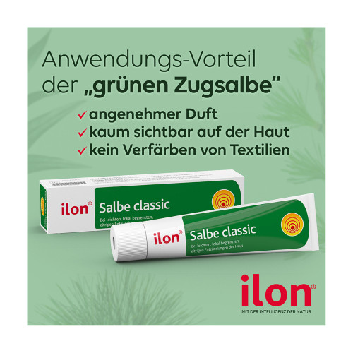 ilon® Salbe classic ist ein traditionelles pflanzliches Arzneimittel zur Behandlung leichter, lokal begrenzter, eitriger Entzündungen der Haut, wie z.B. Eiterknötchen, entzündete Haarbälge und Schweißdrüsenentzündungen.