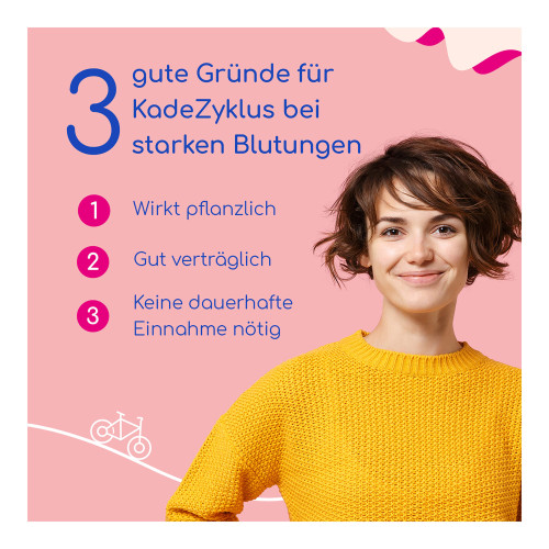 KadeZyklus ist ein traditionelles pflanzliches Arzneimittel zur Verminderung starker Menstruationsblutungen bei Frauen mit regelmäßigen Menstruationszyklen, nachdem ernsthafte Erkrankungen ärztlicherseits ausgeschlossen wurden.