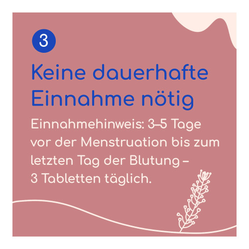 Die Anwendung wird 3- 5 Tage vor der Menstruation begonnen, während der Menstruationsblutung fortgesetzt und mit dem letzten Tag der Blutung beendet. Nach einer Einnahmepause beginnt die Anwendung wieder 3-5 Tage vor der Menstruation.