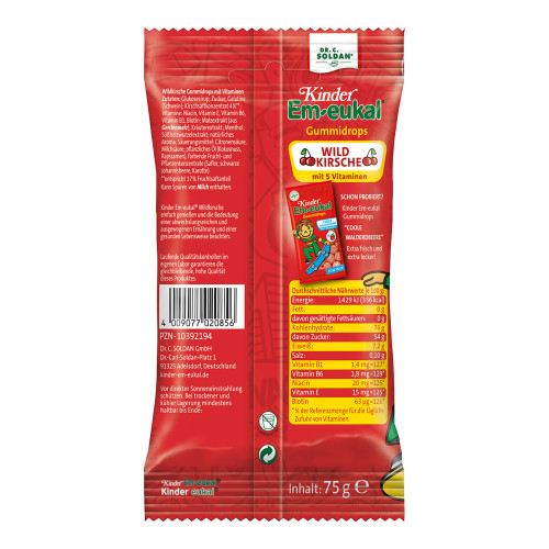 Kinder Em-eukal zuckerhaltige Gummidrops Wildkirsche 75 g