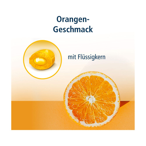 lsomalt, Maltitsirup, Zitronensäure, Orangen-Aroma, Konzentrat aus Rettich, Apfel und Schwarze Johannisbeere, Sucralose, Saflorkonzentrat, Menthol, Lecithin, Kräuter-Aroma.