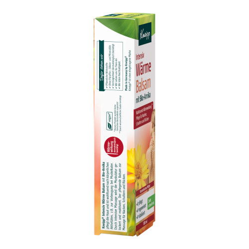 Kneipp® Intensiv Wärme Balsam mit Bio-Arnika pflegt die Haut und ist wohltuend nach körperlichen Aktivitäten, z.B. zur Vorbeugung bei Muskelkater. Durch intensive Massage wird die Muskulatur gelockert und reaktiviert. Der pflegende Balsam zur Massage für Nacken, Schultern und Rücken.