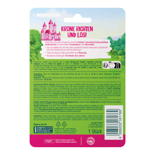 Fühle Dich wie eine Prinzessin mit dem Kneipp naturkind Farbsprudelbad Zauberkrone mit wertvollem Traubenkern- und Avocadoöl.