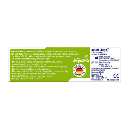 - Kukident Haftcreme Med + Kamille ist geeignet für Voll-& Teilprothesen.