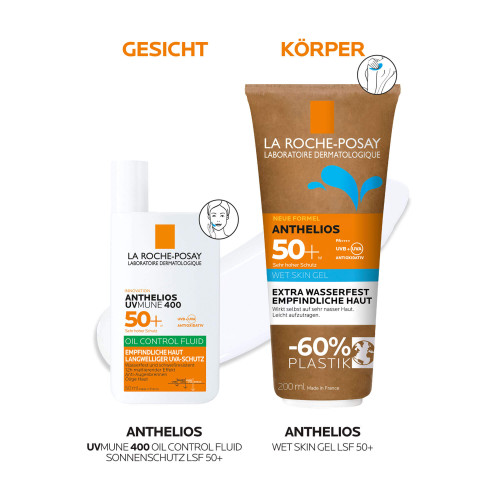 Das ANTHELIOS UVMUNE 400 Oil Control Fluid LSF 50+ von La Roche Posay bietet Sonnenschutz für ölige Haut und verfügt über eine ultra-leichte Fluid-Textur. Das Sonnenfluid fürs Gesicht lässt sich leicht auf der Haut verteilen und brennt nicht in den Augen. Die transparente Formel hinterlässt keine weißen Rückstände auf der Haut und ist wasserfest- sowie schweißresistent. Die Sonnencreme bietet dank der innovativen Filtertechnologie Mexoryl 400 hohen Schutz vor UVB- sowie langwelligen UVA-Strahlen. Gleichzeitig verfügt die Sonnencreme für ölige Haut über einen mattierenden Effekt für bis zu 12 Stunden. Überschüssiger Talg wird dank der AIRLICIUM-Technologie absorbiert.