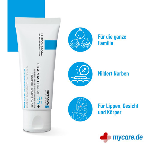 Reparierende Wundsalbe für geschädigte, irritierte Haut Cicaplast Baume B5+ ist eine regenerierende Salbe von La Roche Posay. Die Creme mildert Rötungen und Spannungsgefühle schnell, repariert die Haut und fördert die Regeneration. Sie eignet sich für die Haut von Erwachsenen, Kindern und Babys.