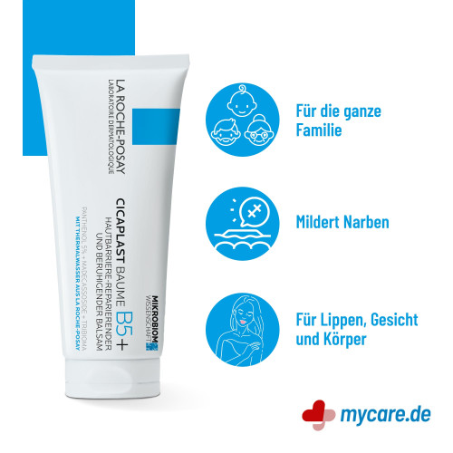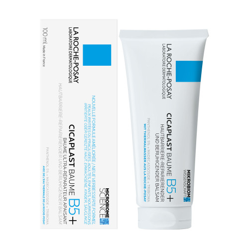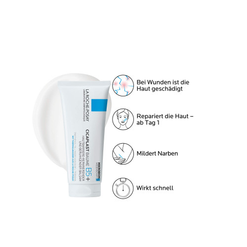 Reparierende Wundsalbe für geschädigte, irritierte Haut Cicaplast Baume B5+ ist eine regenerierende Salbe von La Roche Posay. Die Creme mildert Rötungen und Spannungsgefühle schnell, repariert die Haut und fördert die Regeneration. Sie eignet sich für die Haut von Erwachsenen, Kindern und Babys.