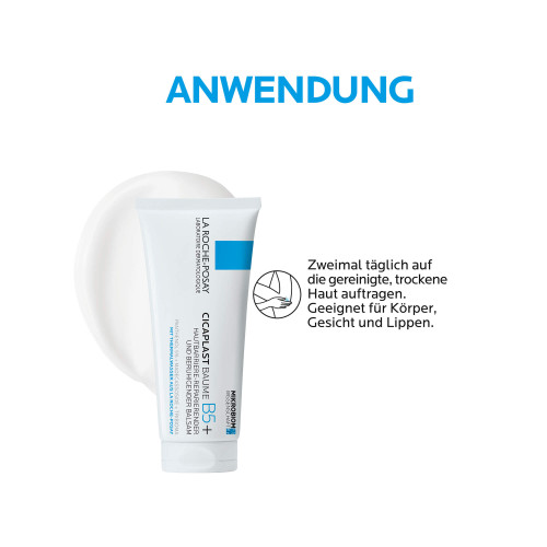 La Roche Posay Cicaplast Baume B5+ für geschädigte und irritierte Haut kann bei verschiedenen Hautreizungen angewendet werden. Dabei eignet sich die reparierende Salbe für gereizte Haut am Körper, im Gesicht und an den Lippen bei Erwachsenen, Kindern und Babys. Vor der Verwendung sollte die Haut gereinigt werden und trocken sein. Anschließend kann die Wundsalbe auf die entsprechende Hautstelle aufgetragen, sanft verteilt und leicht einmassiert werden.