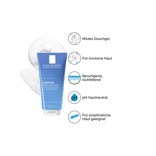 Für die ganze Familie: LIPIKAR Gel Lavant beruhigt und schützt die empfindliche Haut bei der täglichen Reinigung. Seine besonders milde Formel ist für den ganzen Körper geeignet. Die Formel enthält hautberuhigendes Niacinamid und rückfettende Karitébutter, die den Wiederaufbau der Haut unterstützt. Es ist an empfindlicher Babyhaut getestet und auch für die Kopfhaut von Babys geeignet. Mit hautberuhigendem Thermalwasser aus La Roche-Posay.