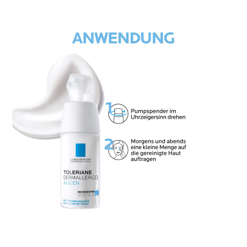 Die Toleriane La Roche Posay Augencreme jeden Morgen und Abend nach der Reinigung auf die Augenpartie auftragen. Eine kleine Menge der Augenpflege auf die Fingerspitze geben und die Creme vorsichtig auf Augenlider und Augenkonturen tupfen. Die Creme sanft vom inneren Augenwinkel nach außen verstreichen. Dank des ultra-hermetischen Pumpspenders lässt sich die Augencreme für empfindliche Augen besonders leicht entnehmen und dosieren. Bei Kontakt mit den Augen diese sofort gründlich ausspülen.