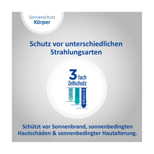 Sonnenstrahlen gibt es in verschiedenen Wellenlängen. Sie haben verschiedene Auswirkungen auf die Haut, wirken jedoch alle zellschädigend. Daher ist es wichtig einen Sonnenschutz zu verwenden, der rundum schützt. Dank seines 3-fach Zellschutzes schützt das Ladival® Aktiv Sonnenschutz-Spray vor UV-A- & UV-B Strahlen, sowie vor den Folgen von Infrarot-A Strahlung.