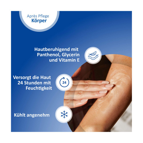 Das Après Pflege-Gel kühlt sofort angenehm nach dem Auftragen und spendet Ihrer Haut Feuchtigkeit.