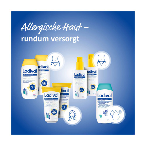 Ganzjähriger Sonnenschutz ist essenziell, da er nicht nur vor Sonnenbrand und sonnenbedingter Hautalterung schützt, sondern auch das Risiko an Hautkrebs zu erkranken reduziert. Um Menschen mit allergischer Haut optimal zu versorgen, bietet Ladival die Allergische Haut-Serie an. Diese wurde speziell für Haut entwickelt, die zu Sonnenallergie (polymorphe Lichtdermatose/PLD) und Mallorca-Akne neigt.